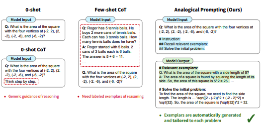 Analogical Prompting1 is a method that aims to get LLMs to generate examples that are relevant to the problem before starting to address the user's query.